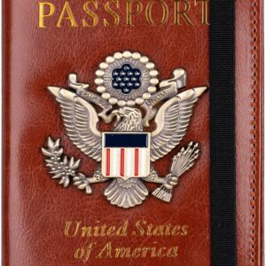 TOURSUIT RFID Blocking Passport Holder for Women Men, Leather Passport Travel Wallet with Metal 3D Metal Badge, Travel Document Holder Cover Accessories (Brown)