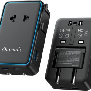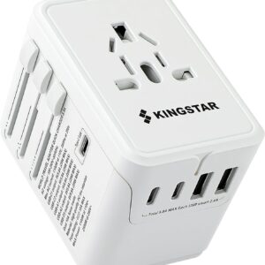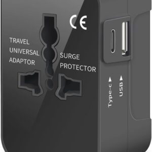 Travel Adapter, Universal Power Adapter Worldwide Wall AC Power Plug Converter Travel Charger with Type-C and USB-A Charging Ports for USA EU UK AUS Mobile Phones, Tablets, Travel Essentials