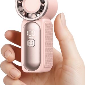 Gaiatop Portable Handheld Mini Fan, 6 Speeds 16900 RPM High Velocity Personal Fan with LED Display, USB Rechargeable, Mini Fan with Lanyard for Makeup, Travel, Outdoor Fan for Women Girl Gift, Pink