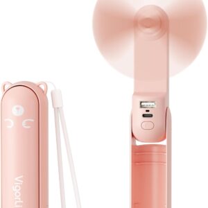 Gaiatop Portable Mini Fan, 3 Speed Handheld Fans with Power Display Flashlight, USB Rechargeable Battery, Lightweight Personal Cooling for Women Men Indoor Outdoor Travel Pink