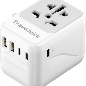 Universal Travel Adapter, TraveJuice International Power Adapter 5.6A 3 USB C 2 USB A Adaptor Travel Worldwide, European Travel Charger Outlet Converter