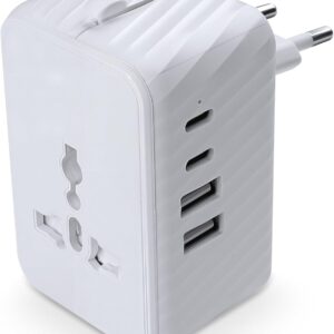 Universal Travel Adapter Worldwide International Plug Adaptor with 2 USB C 2 USB A Ports,World Power Outlet for European USA UK Australia Ireland