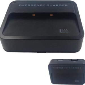 Battery Operated Phone Charger Emergency Hold on Wall USB Battery Powered Power Bank Portable 2 AA Batteries Powered Outlet (Black)