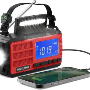 FosPower NOAA Emergency Weather Radio D8 37000mWh Portable Power Bank, AM/FM, USB/Solar/Hand Crank Charging, SOS Alarm & Flashlight for Indoor/Outdoor Emergency – Red