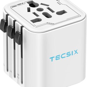 Universal Travel Adapter Worldwide, TECSIX Compact Travel Power Plug Adapter (Type A C G I), 2500W Internetional Wall Charger Outlet Adaptor to Europe, India, UK, US, AUS, Asia 200+ Countries